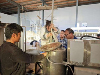 胡永金教授凭借丰富的理论知识和实践经验,为团队成员提供了专业的技术指导。从咖啡鲜果的筛选、发酵罐的操作,到发酵过程的监控和绿色脱胶技术的应用,胡教授给出精准的讲解和建议。在他的指导下,团队成员们更加精准地把握技术要点,确保中试生产的顺利进行。