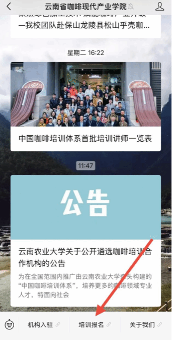 1.扫码关注“云南省咖啡现代产业学院”微信公众号。