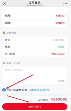 5、在订单确认页面勾选同意协议,然后点击确认并支付按钮,最后使用微信支付即可完成购买。